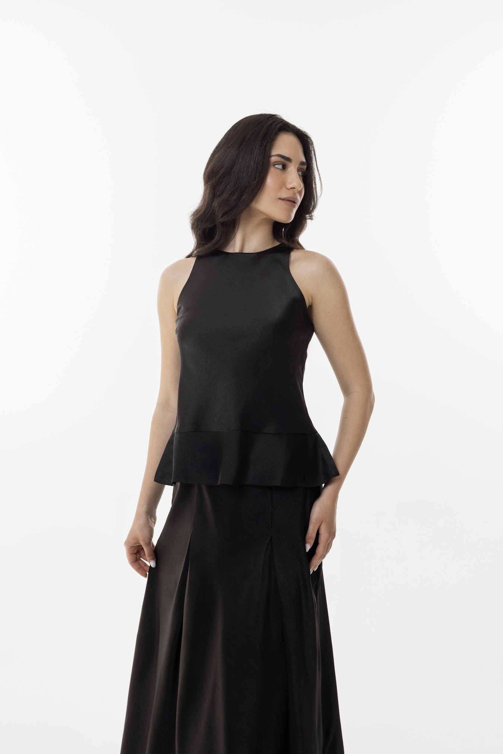 The Malli Halter Peplum is your go-to for effortless elegance. Its flattering cut and refined fit make it a versatile staple that moves easily from day to night. Pair it with our black midi skirt for a sleek monochrome moment or with white trousers for an elevated contrast.